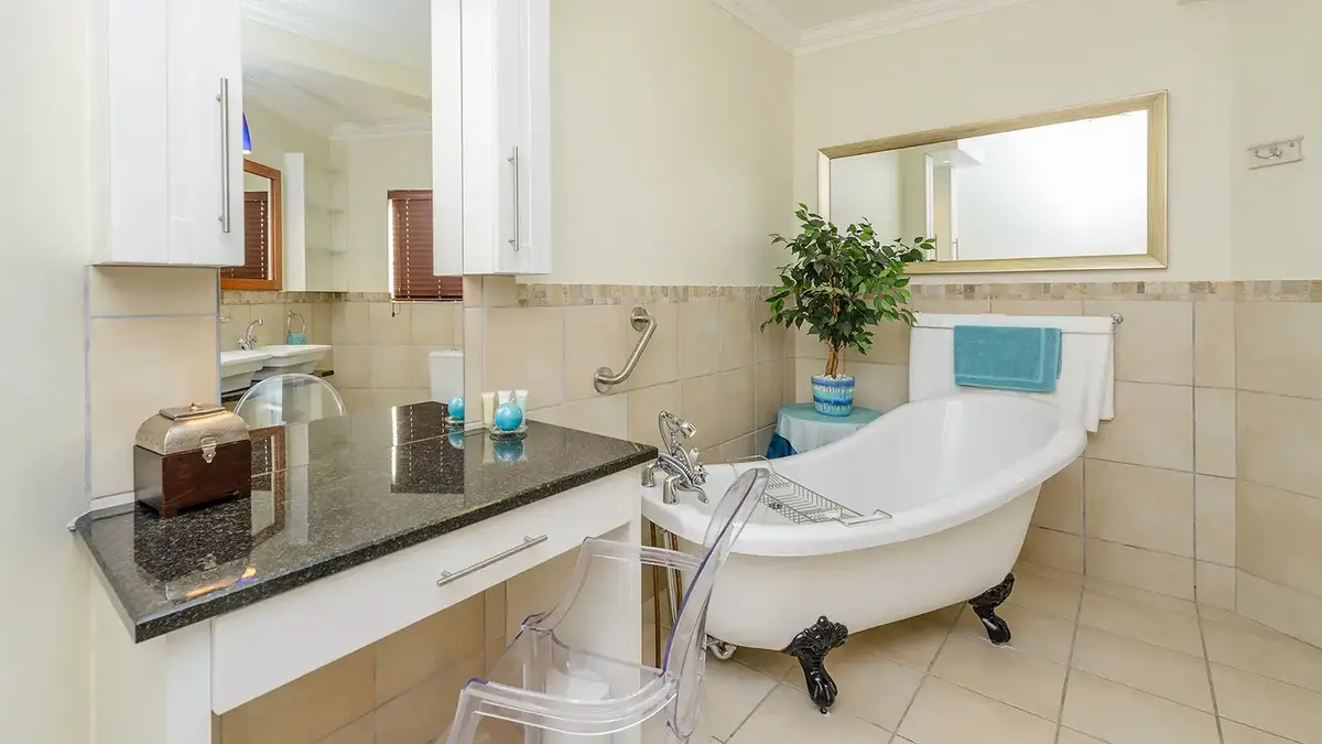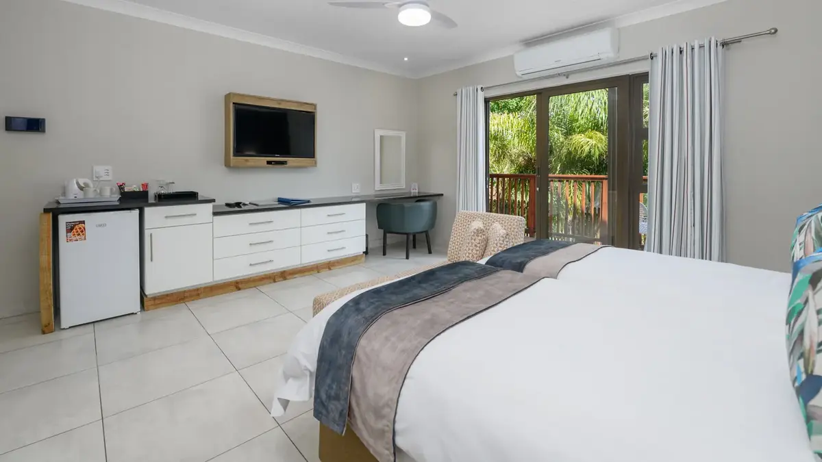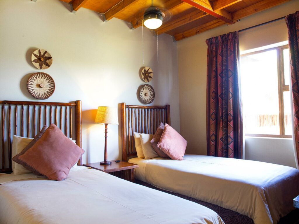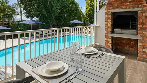 Ideal for families and friends, this luxury self-catering chalets comes in 2 sleeper, 4 sleeper and 6 sleepers The main bedroom features a queen-size bed and an en-suite bathroom. The second and third bedrooms are furnished with two single beds each. The chalet also has a spacious lounge with a sleeper couch, suited for two children under 12 years old, a full kitchen, equipped with modern appliances, and a spacious dining room. The charming patio is fitted with braaifacilities - offering the perfect spot to enjoy the tranquil surroundings.