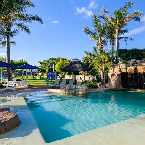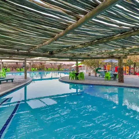 At Four Seasons Resort, we specialize in family-friendly accommodations that cater to all your needs. Our self-catering options, camping and caravan sites provide a unique way to connect with nature while enjoying the comforts of home. With swimming pools, exhilarating water slides, and a jungle gym, we ensure your kids have the time of their life while you relax. Our sports bar and restaurant offer delicious dining choices, making your stay pleasurable and convenient. Come explore our expansive outdoor space designed for memorable events and adventures.