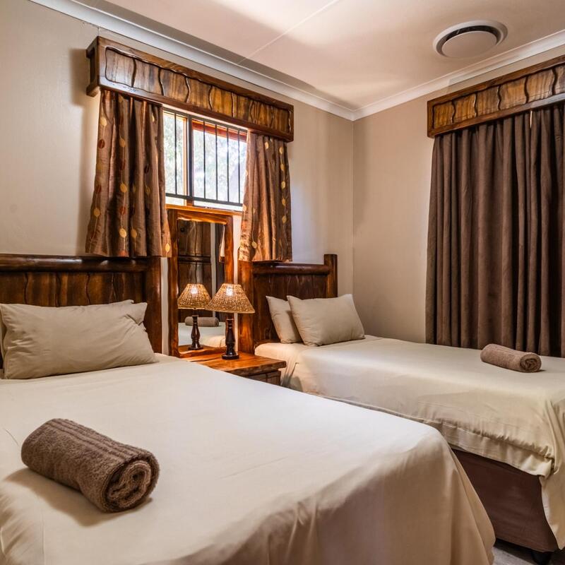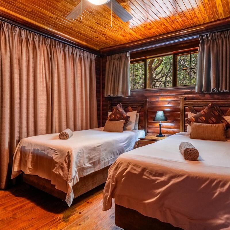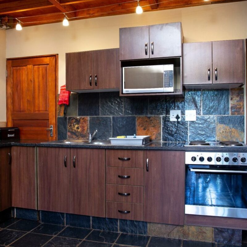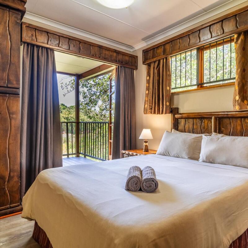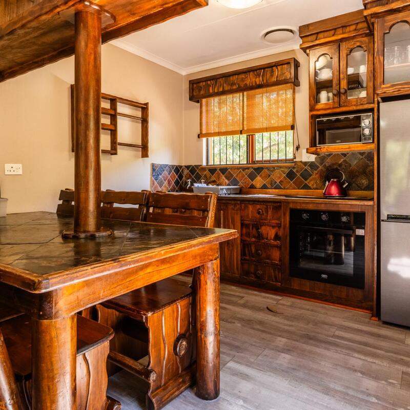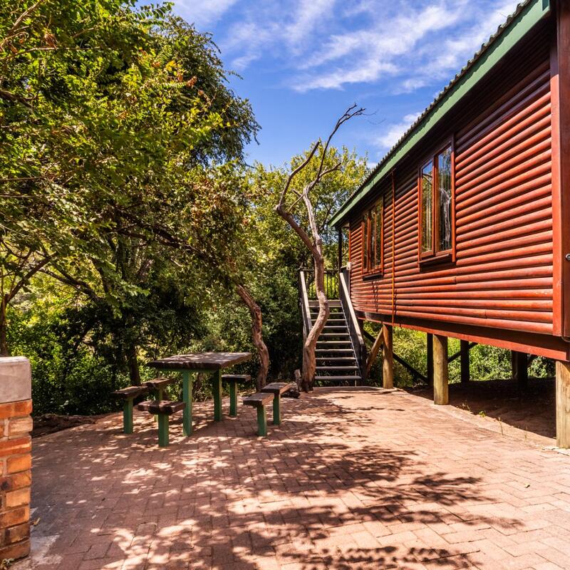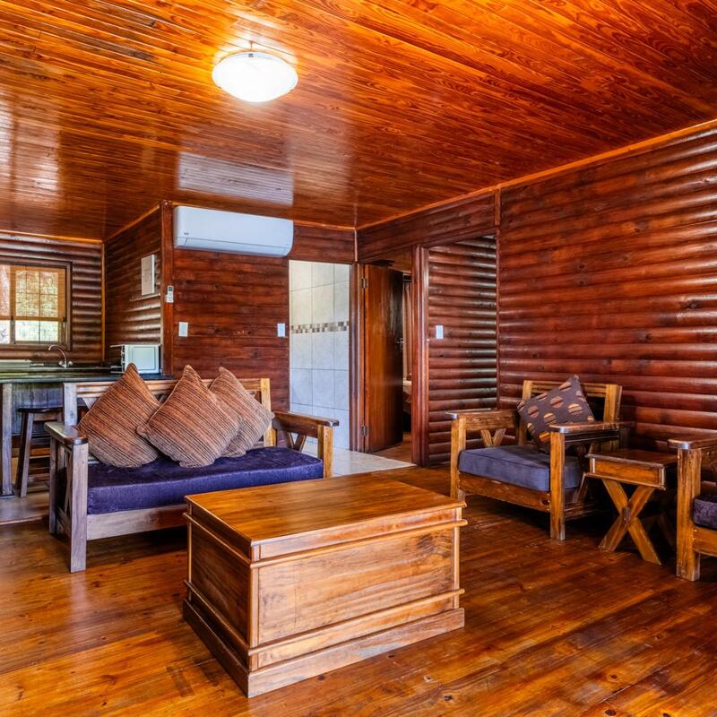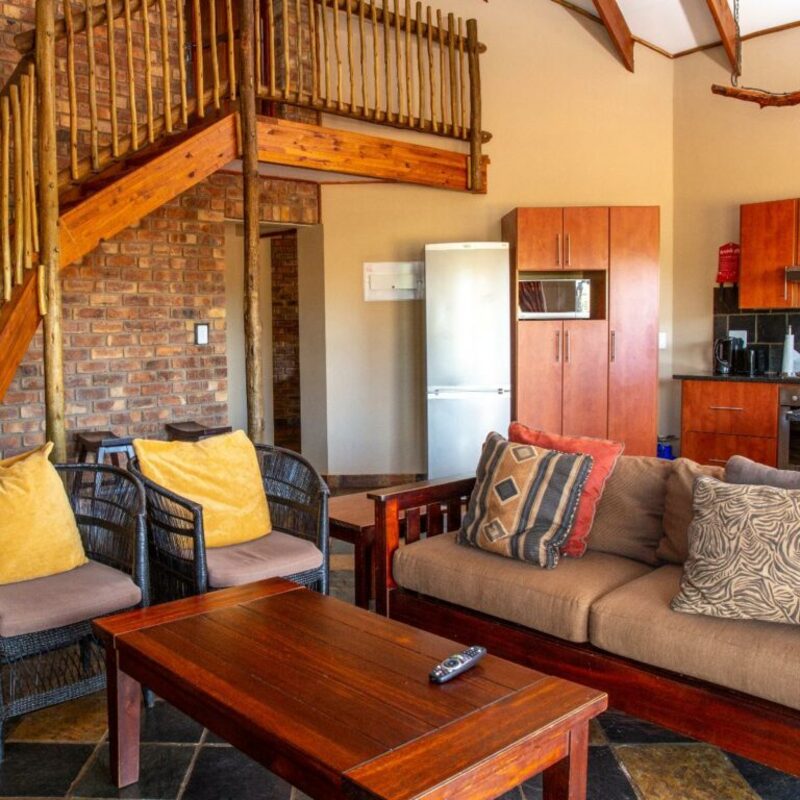 Ideal for families and friends, this luxury self-catering chalets comes in 2 sleeper, 4 sleeper and 6 sleepers The main bedroom features a queen-size bed and an en-suite bathroom. The second and third bedrooms are furnished with two single beds each. The chalet also has a spacious lounge with a sleeper couch, suited for two children under 12 years old, a full kitchen, equipped with modern appliances, and a spacious dining room. The charming patio is fitted with braaifacilities - offering the perfect spot to enjoy the tranquil surroundings.