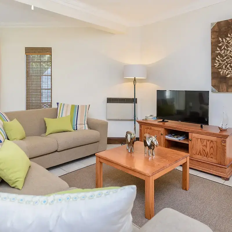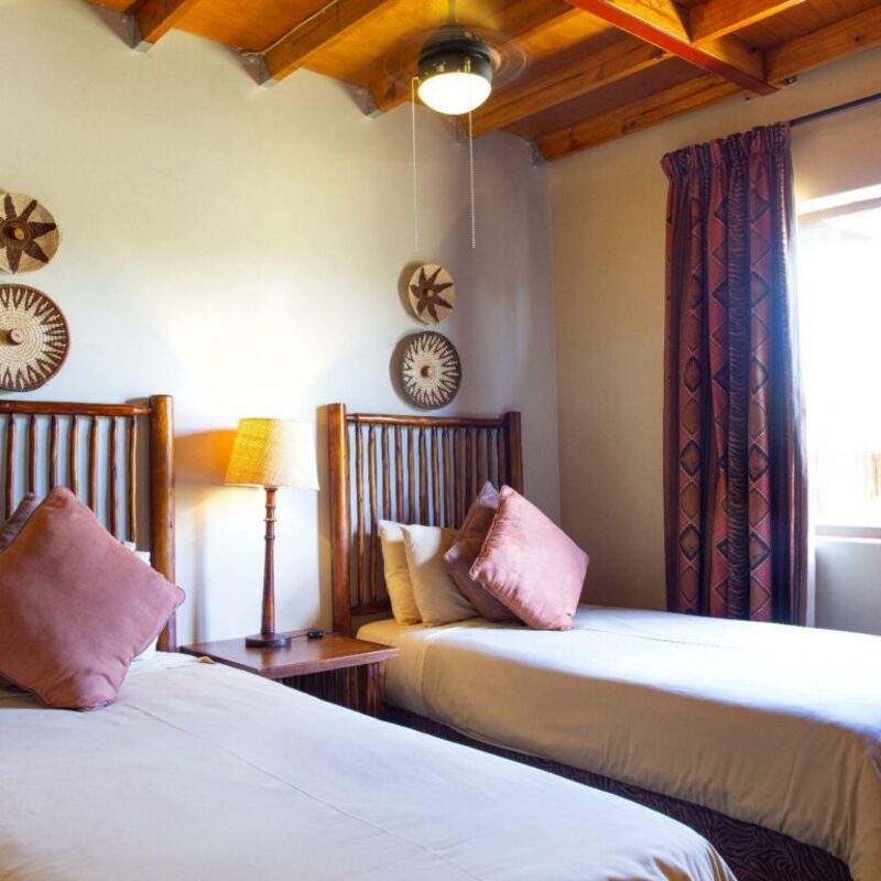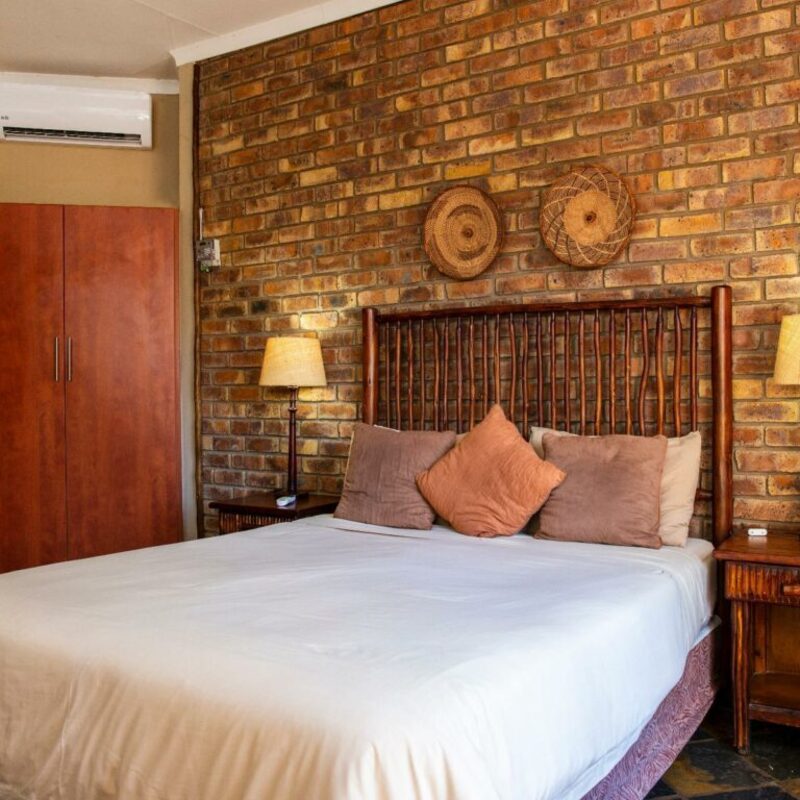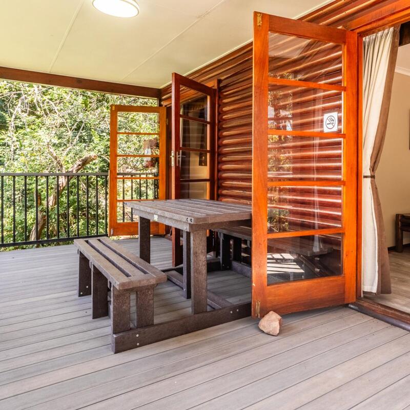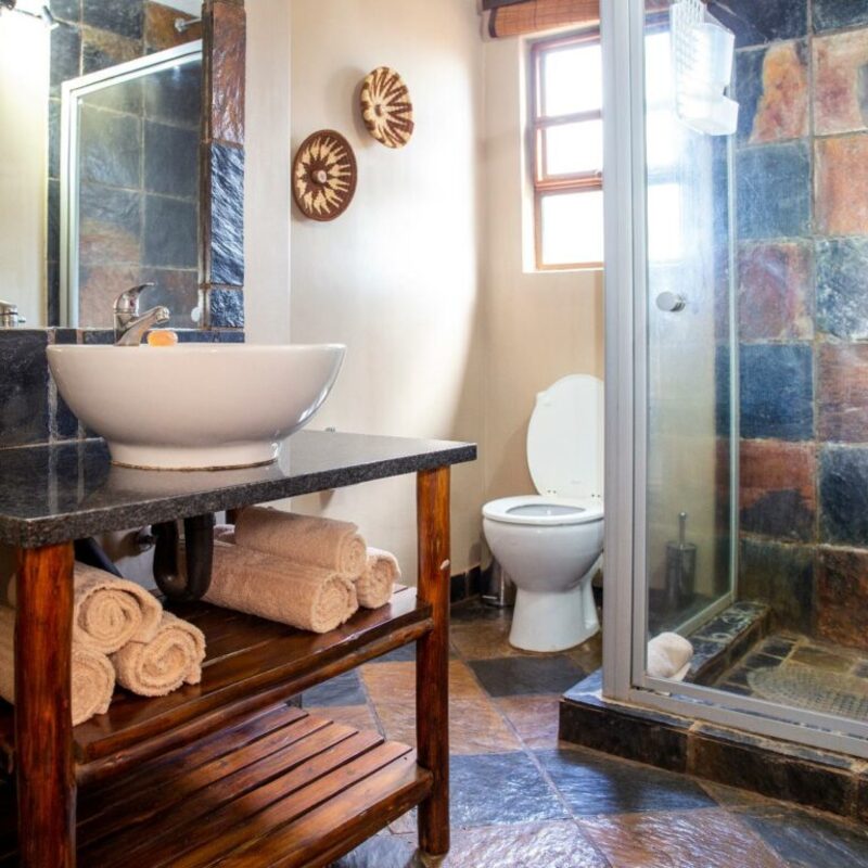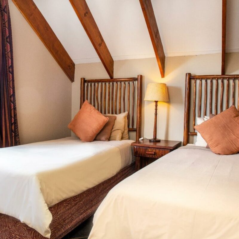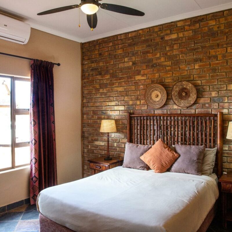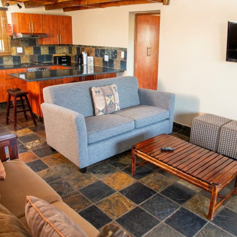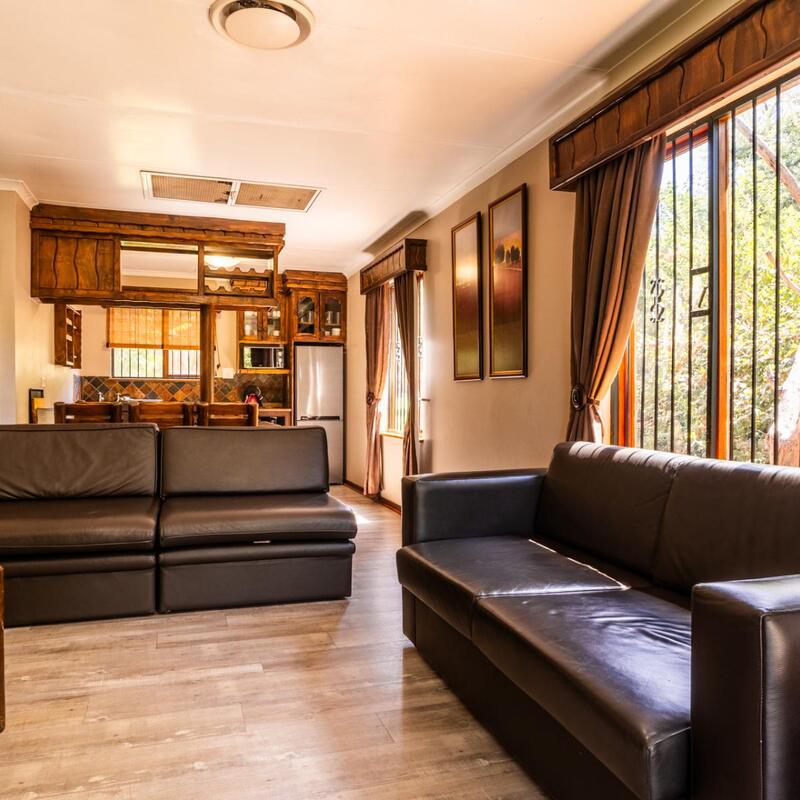 Ideal for families and friends, this luxury self-catering chalets comes in 2 sleeper, 4 sleeper and 6 sleepers The main bedroom features a queen-size bed and an en-suite bathroom. The second and third bedrooms are furnished with two single beds each. The chalet also has a spacious lounge with a sleeper couch, suited for two children under 12 years old, a full kitchen, equipped with modern appliances, and a spacious dining room. The charming patio is fitted with braaifacilities - offering the perfect spot to enjoy the tranquil surroundings.
