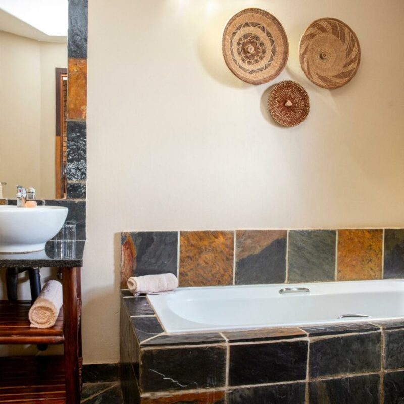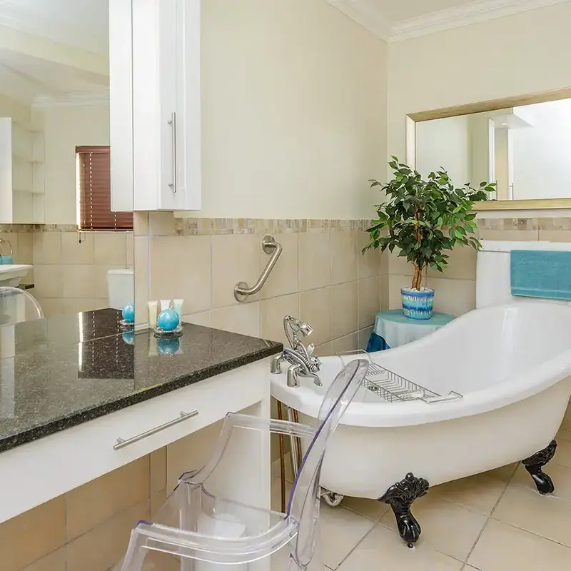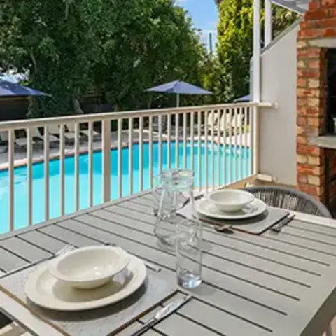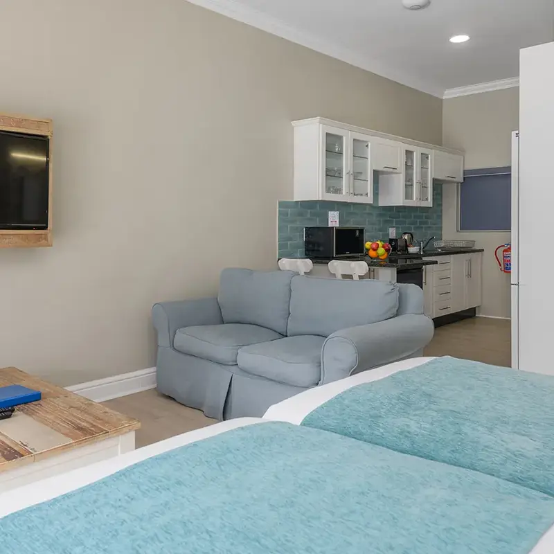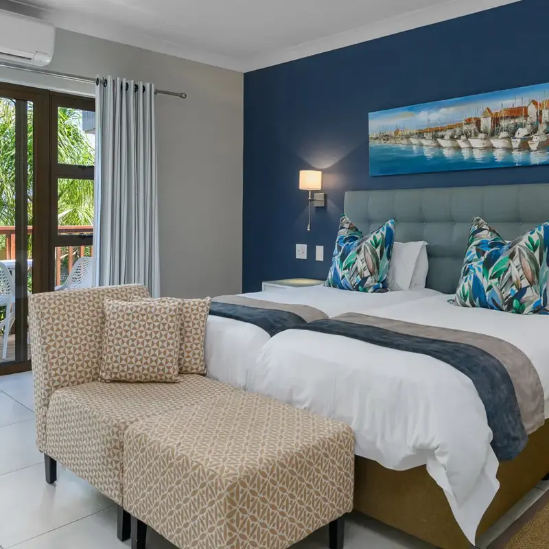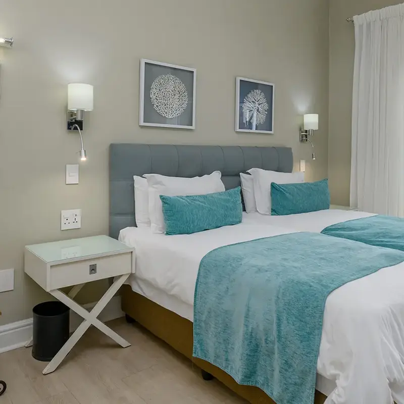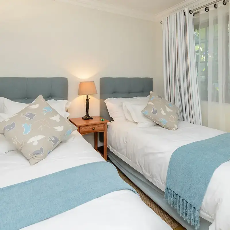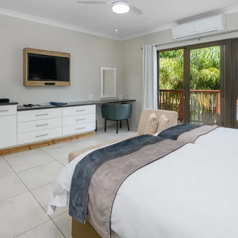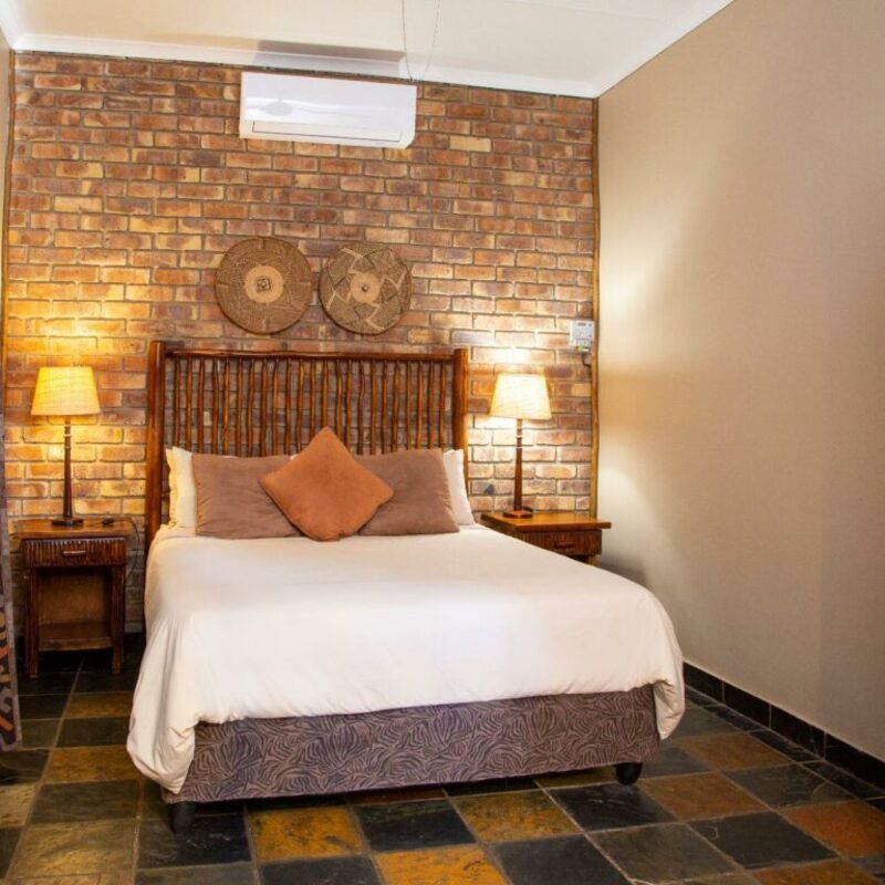Ideal for families and friends, this luxury self-catering chalets comes in 2 sleeper, 4 sleeper and 6 sleepers The main bedroom features a queen-size bed and an en-suite bathroom. The second and third bedrooms are furnished with two single beds each. The chalet also has a spacious lounge with a sleeper couch, suited for two children under 12 years old, a full kitchen, equipped with modern appliances, and a spacious dining room. The charming patio is fitted with braaifacilities - offering the perfect spot to enjoy the tranquil surroundings.