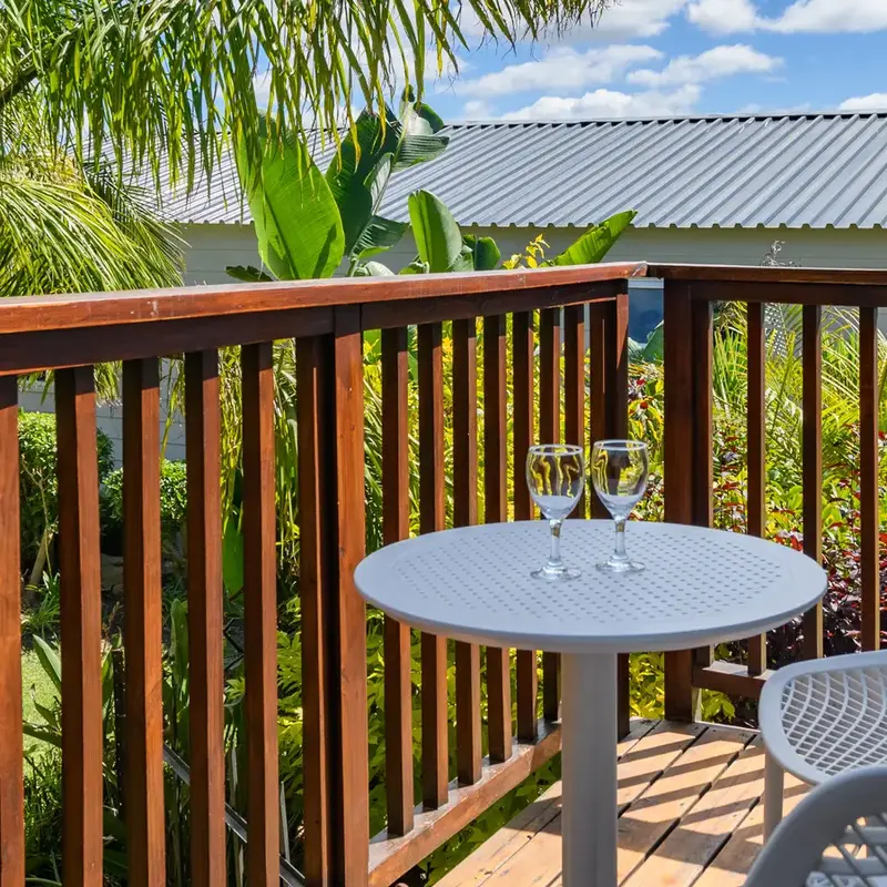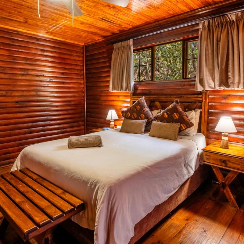The log cabins are fully equipped with a fridge, stove, microwave, everyday appliances, crockery, cutlery and ceiling fans. All bed linen and towels are supplied. Please bring your own swimming towels, dish and drying up cloths. Enjoy a covered patio with its own braai facility.